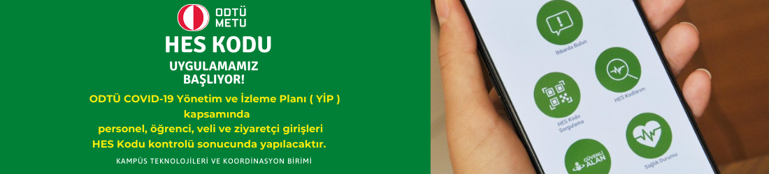 Bölüm ve birimlerimize 20 Eylül 2021 tarihinde dağıtımı yapılan ODTÜ COVID-19 Yönetim ve İzleme Planı (YİP) kapsamında; ODTÜ yerleşkesine gelecek ziyaretçiler için HES Kodu sorgulaması uygulamasına başlanacaktır.